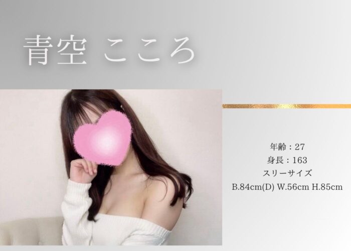 新人紹介 2025-10-09 しなやかな美ボディに、S級ビジュアル!こころちゃんです♡ 居心地が良く和やかな空間を自然と作れる女の子…。 身体を一つ一つ丁寧に優しく解し、奥深くまで届くしっとり施術に平常心を保っていられない…。...